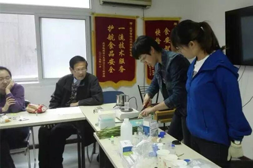 下午由東北農業(yè)大學食品工程專業(yè)碩士董鑫帶領學員動手實操體驗快檢,學員自己動手操作檢測了常見果蔬中的農藥殘留,牛奶中三聚氰胺檢測、泡椒鳳爪雙氧水檢測、冰糖二氧化硫檢測、速凍水餃亞硝酸鹽檢測,食用油脂、地溝油等的快速檢測等,實操課程學員顯現(xiàn)出了飽滿的熱情和認真細心的態(tài)度,課程結束學員還意猶未盡。