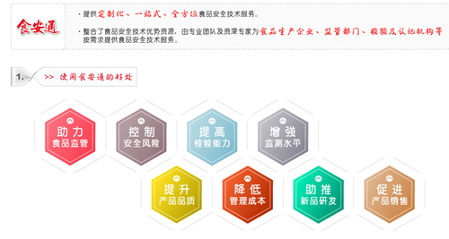 食安通——食品安全與質(zhì)量監(jiān)管技術支持服務平臺,提供定制化、一站式、全方位質(zhì)量技術服務。整合了食品行業(yè)優(yōu)勢資源,由專業(yè)團隊及專家團隊為食品生產(chǎn)企業(yè)、監(jiān)管部門、檢驗及認證機構等按需求提供定制化服務。它還有以下諸多好處: