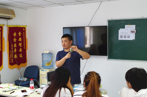 技術人員帶著學員動手檢測蔬菜中的農殘