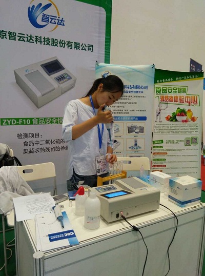 在“科學儀器走進百姓生活”活動展示區,北京智云達為參會觀眾現場開展免費的食品安全檢測展示,現場進行了果蔬中農藥殘留檢測、食品中二氧化硫檢測等演示實驗,圍觀群眾不時提出疑問,現場技術人員一一解答。