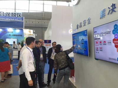 參展期間,在新疆電信食品安全解決方案展示區(qū),展位視頻循環(huán)播放北京智云達食品安全解決方案的詳細介紹,流程及適用對象、監(jiān)控系統(tǒng)。在電腦屏幕前,前來詢問解決方案系統(tǒng)的人絡繹不絕,更有感興趣的外國友人跨越語言障礙,耐心聽我們的技術人員一一做詳細解答。同時在參展區(qū)展示北京智云達自主研發(fā)生產的快速檢測儀、快速檢測試劑盒,來自伊朗的國際友人對儀器頗有好感,進行詳細咨詢。電視下方設置關注官方微信二維碼,方便興趣人員關注留言。