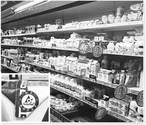 右上圖 利樂包裝讓高溫消毒的無菌奶占據(jù)壓倒性優(yōu)勢,需要冷藏保存的低溫巴氏殺菌奶受到影響。而業(yè)界公認(rèn),低溫奶營養(yǎng)價值更高,跟常溫奶占據(jù)的空間和熱鬧的促銷形成鮮明對比,品種很少。這是超市里的低溫奶專柜。經(jīng)濟(jì)日報記者 佘 穎攝