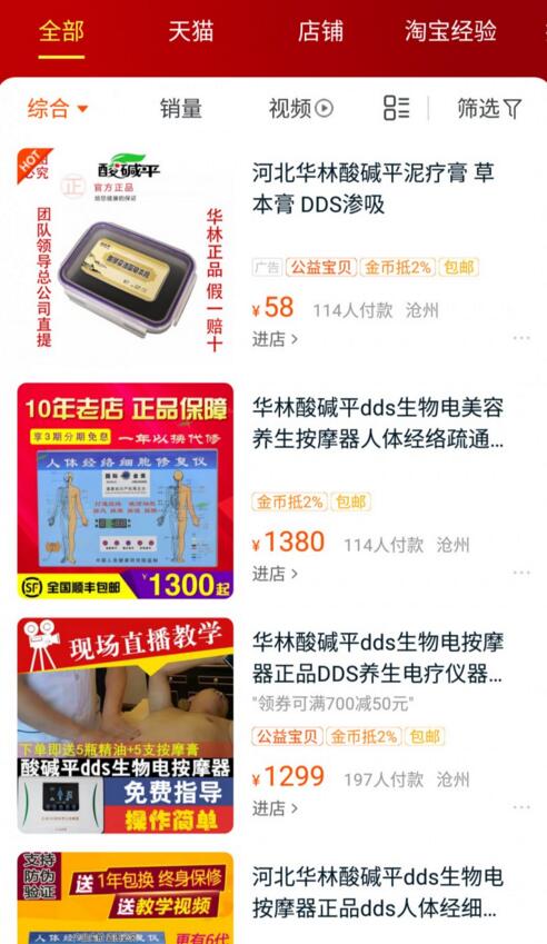 不過(guò)在淘寶、京東等電商平臺(tái),搜索河北華林、酸堿平DDS等關(guān)鍵詞時(shí),發(fā)現(xiàn)仍有部分該系列產(chǎn)品在售賣,售價(jià)從幾百元至幾千元不等。