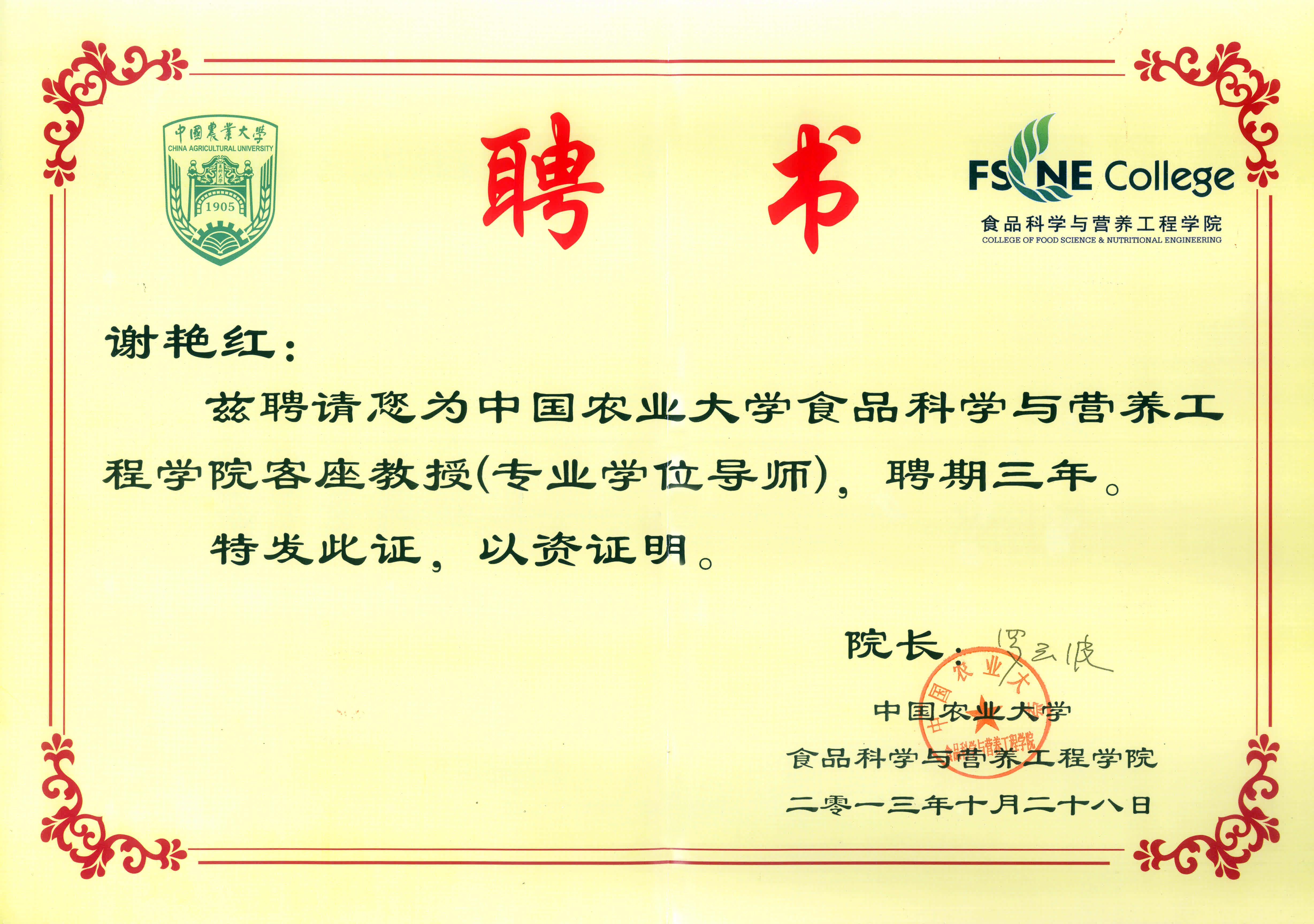 智云達專家受聘中國農大客座教授