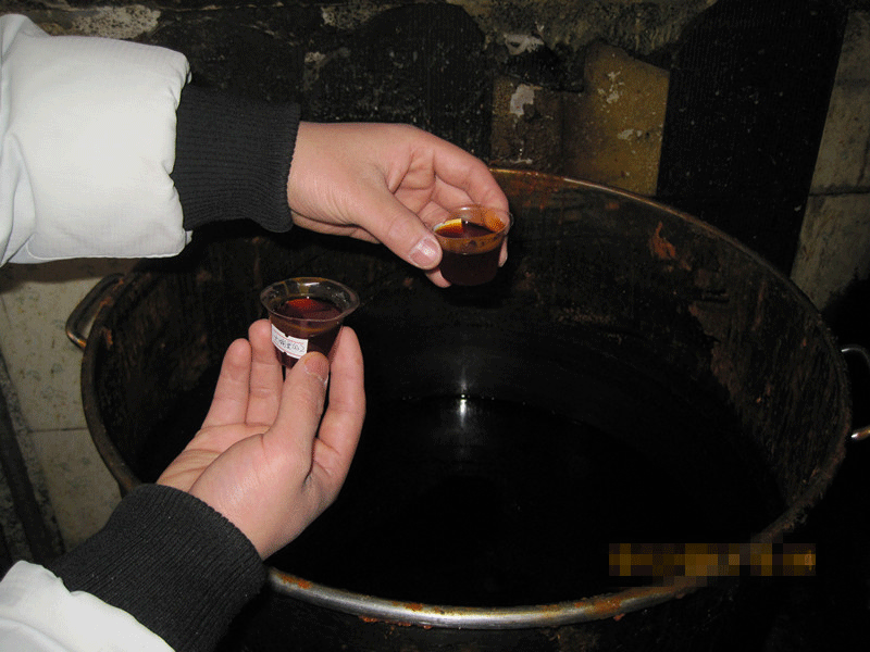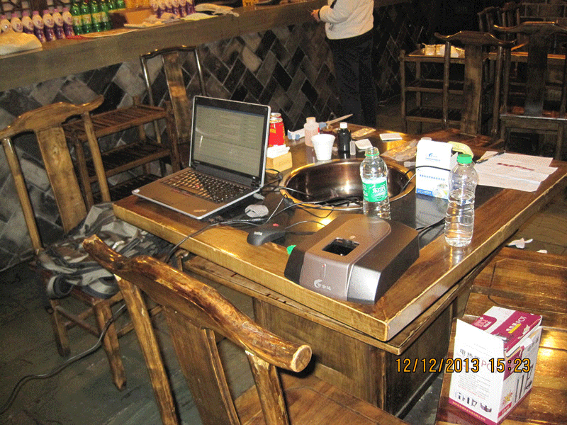 2013年12月12日下午, 智云達公司的領導和技術人員陪同四川省食藥監局的領導現場執法,在執法過程中抽查某連鎖火鍋店青羊店時,在廚房發現餐廚回收油提煉工具2套,提煉半成品2個桶內各半桶,回收成品油1桶,約200多斤。成品油還在文火熬制(老板解釋這是不用的廢棄油,馬上拉走),油在桶內褐得發黑,取出來后紅褐色。利用智云達公司的食用油過氧化值速測盒檢測了樣品的過氧化值,又利用PCS多功能食品安全快速檢測儀檢測了地溝油極性標志物,平行檢測試驗結果表明,兩個指標均為陽性,確定該火鍋店回收提煉的是地溝油無疑。