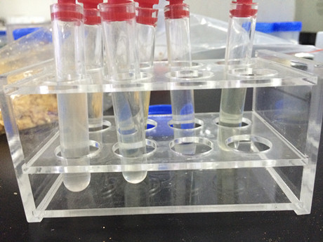 2、取兩個比色皿,分別為樣品組合對照組。在樣品管加入3ml樣品液,在對照管中加入3ml緩沖液,隨后分別加入20ul顯色劑和50ul酶試劑。蓋塞混勻靜置10min。搖勻后放置10min,加入20ul l底物搖勻