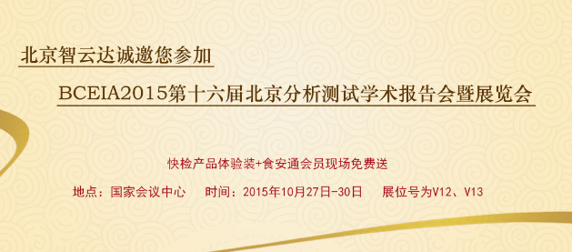 第十六屆北京分析測(cè)試學(xué)術(shù)報(bào)告會(huì)暨展覽會(huì)(BCEIA 2015)于2015年10月27日-30日在國(guó)家會(huì)議中心如期舉行。北京智云達(dá)科技有限公司受邀參展,展位號(hào)為:V12、V13,智云達(dá)誠邀您蒞臨參展。